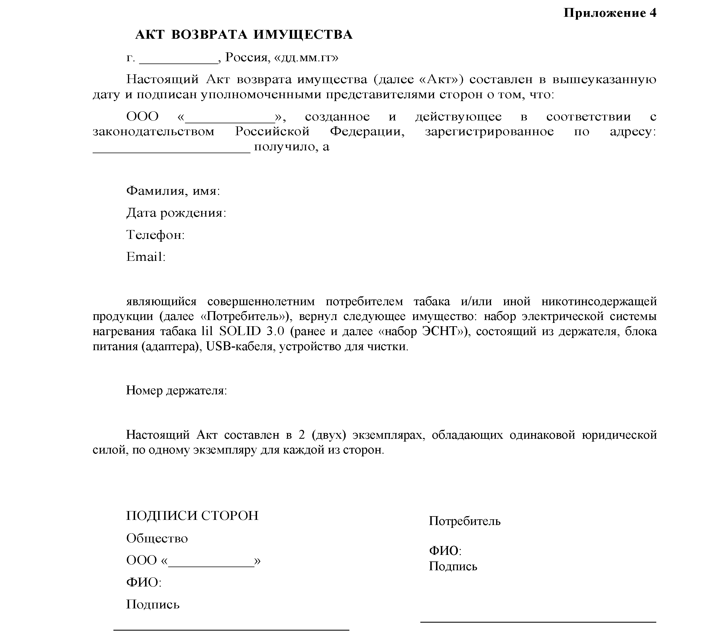 10.2.3 Вы являетесь потребителем табака и/или иной никотинсодержащей продукции, постоянно проживающим на территории Российской Федерации, заказываете или оформляете в аренду Товары для личного потребления, находясь на территории Российской Федерации