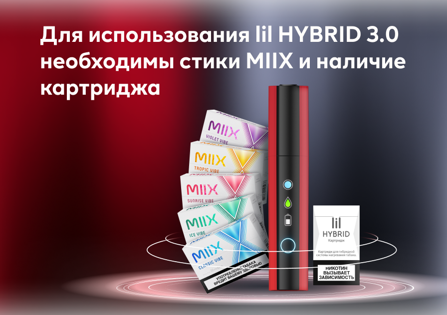 Стики MIIX НЕ СОВМЕСТИМЫ с устройствами IQOS и lil SOLID, так же, как и HEETS или Fiit НЕ СОВМЕСТИМЫ c устройством lil HYBRID 3.0.