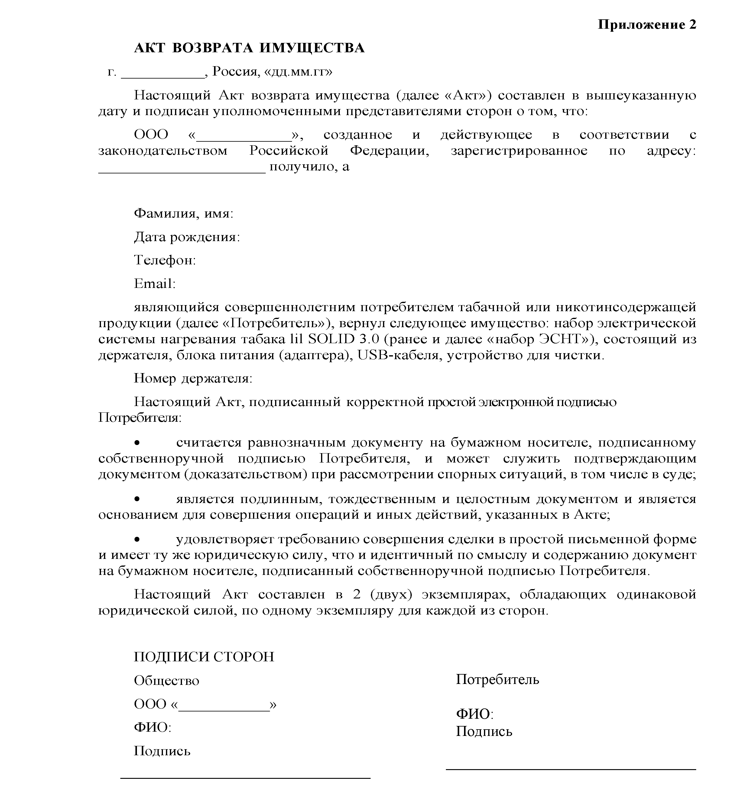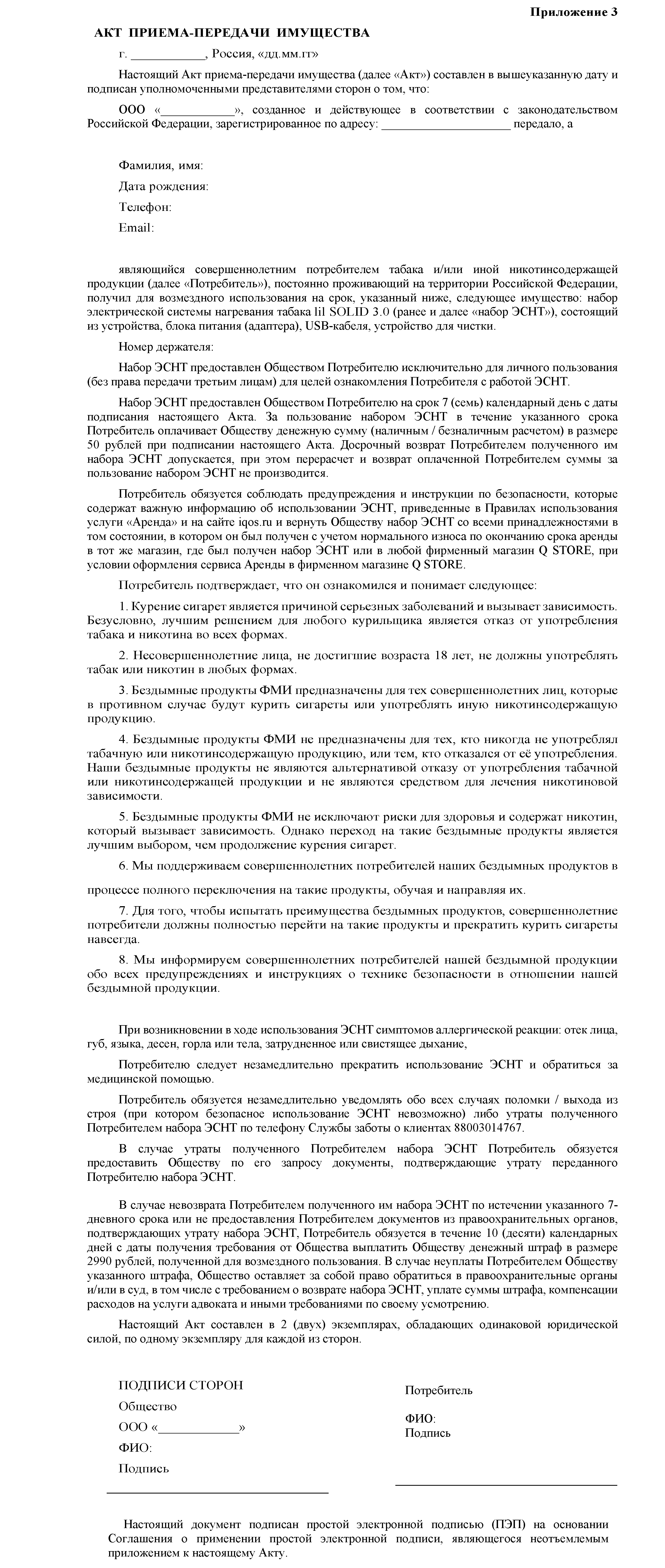 10.2.3 Вы являетесь потребителем табака и/или иной никотинсодержащей продукции, постоянно проживающим на территории Российской Федерации, заказываете или оформляете в аренду Товары для личного потребления, находясь на территории Российской Федерации