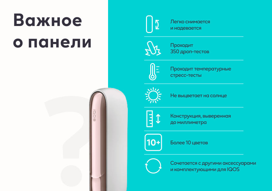 Также панели проходят 3000 циклов снятия, 3 вида температурных испытаний и 350 дроп-тестов — всё для того, чтобы цветные панели радовали вас каждый день.