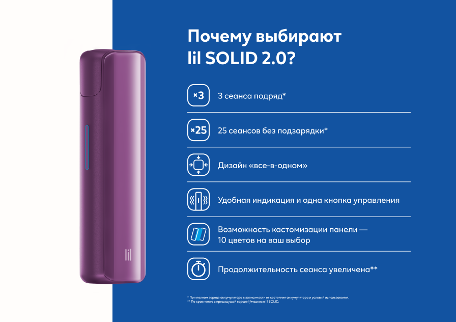 Для использования с устройствами lil SOLID специально разработаны стики Fiit и стики HEETS. Мы не гарантируем корректную работу наших устройств при использовании с другими стиками.